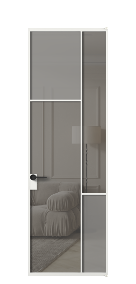 Лаконичный разделительный профиль внутренней раскладки полотна обеспечивает эстетический внешний вид конструкции и идеальную стыковку вставок из стекла.