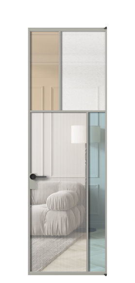 Лаконичный разделительный профиль внутренней раскладки полотна обеспечивает эстетический внешний вид конструкции и идеальную стыковку вставок из стекла.